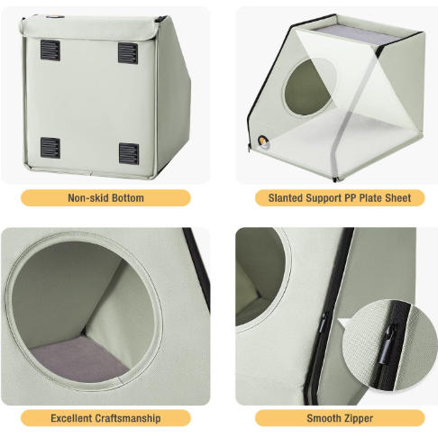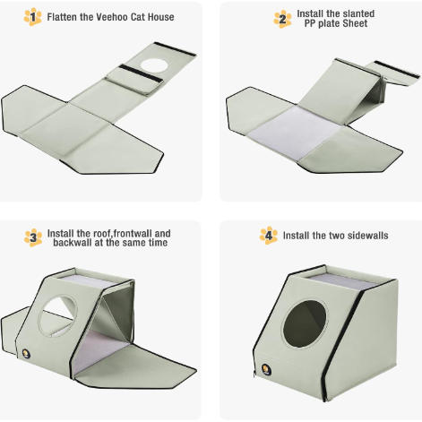 Easy to Assemble. The cat hut can be easily disassembled and installed in a matter of seconds, no tool needed. Safe and odorless with high quality material, best choice for trips, cookouts, picnics and anywhere else.