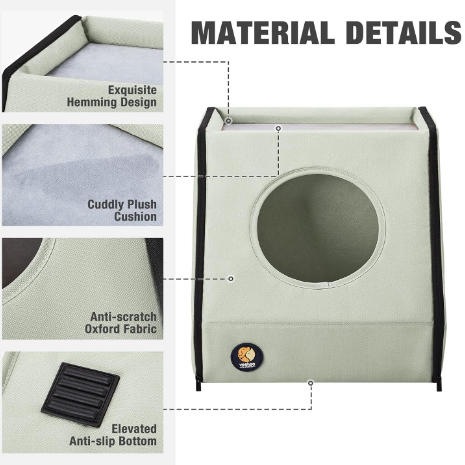 Anti-slip Design. There's thick non-skid rubber in the bottom of the cat house, keeps the cat bed in place while your kitten wriggles. No worry about movement on the tile and hardwood floors in the home.